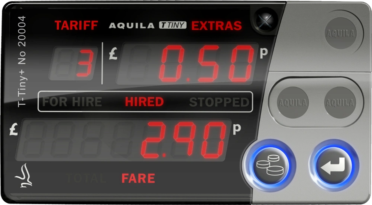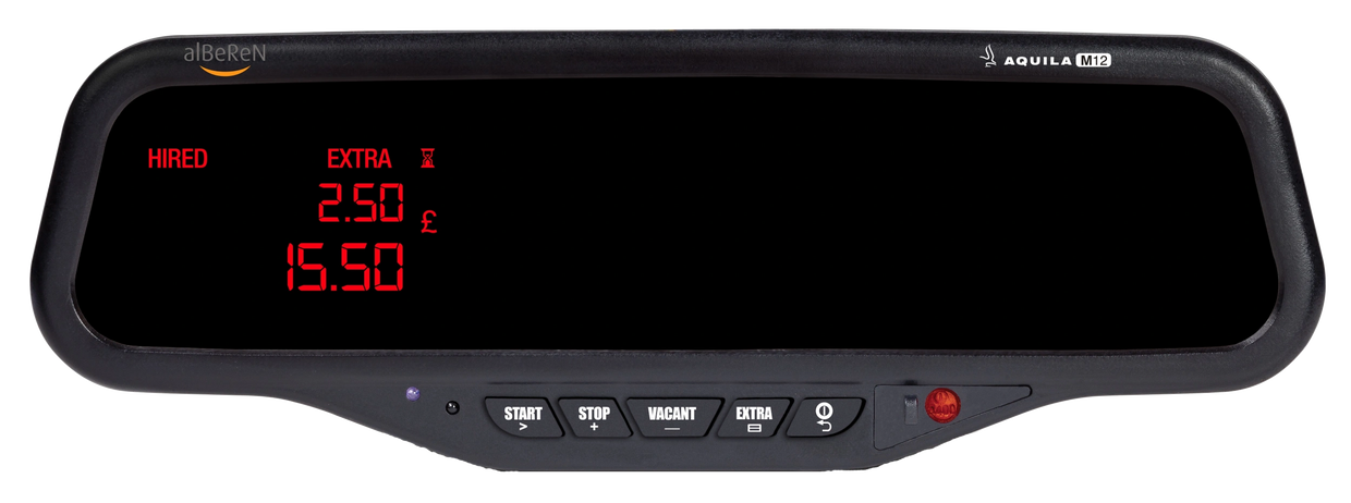 The M12 Mirror Taximeter is supplied as the result of a partnership with Alberen Electronics. The product has been fully integrated into the Aquila range, and Aquila dealers benefit from the same programming software, online services and technical support as our other products.